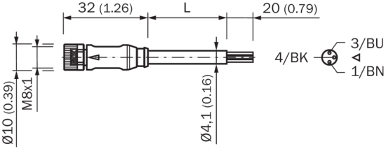Cordon M8 3 Pôles Droit en PUR sans halogène, 5m avec extrémité libre
