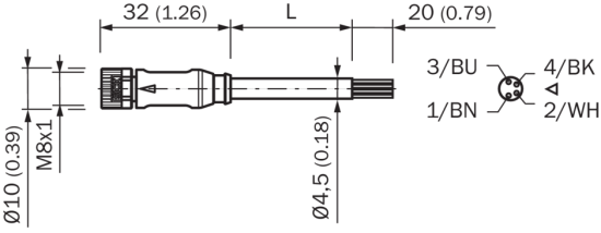 Cordon M8 4 Pôles Droit en PUR sans halogène, 5m avec extrémité libre
