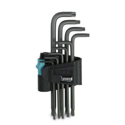 Jeu de 9 clés TORX® chromées mates avec support. Comprenant les tailles 8mm, 9mm, 10mm, 15mm, 20mm, 25mm, 27mm, 30mm et 40mm